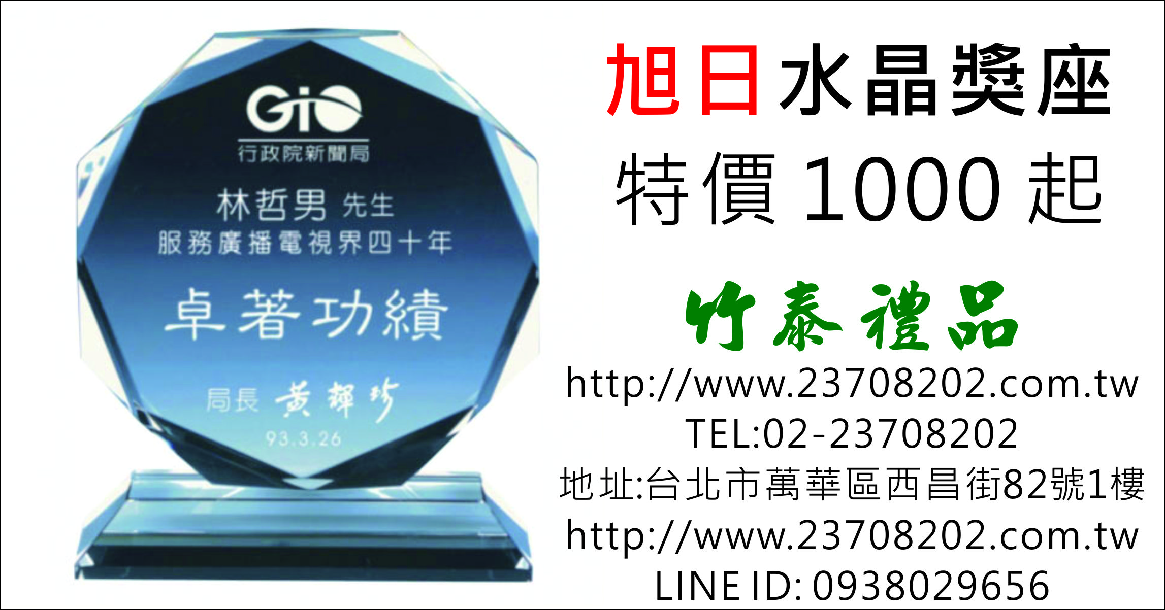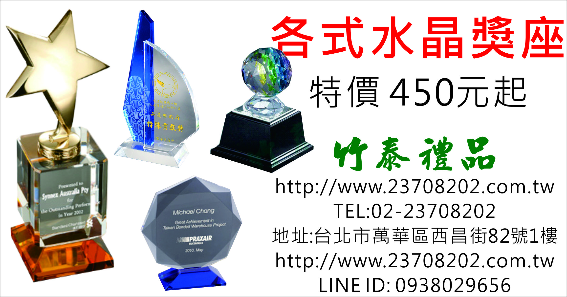 各式獎盃獎牌、水晶獎牌、水晶獎盃、琉璃獎牌、琉璃獎座、金像獎盃、金屬獎盃、 金箔獎牌、傳統木質獎牌、壓克力獎座、運動獎牌、徽章、紀念幣、職務名牌、傳統木匾、 金箔畫匾、公司金屬招牌、證件框、獎狀框、錦旗、廣告旗幟、宣傳布條、旗桿旗座、各國國旗、彩噴帆布、背帶帽子、旗幟輸出、識別証帶、手圈錦旗、路燈旗製作施工、紀念旗萬國旗